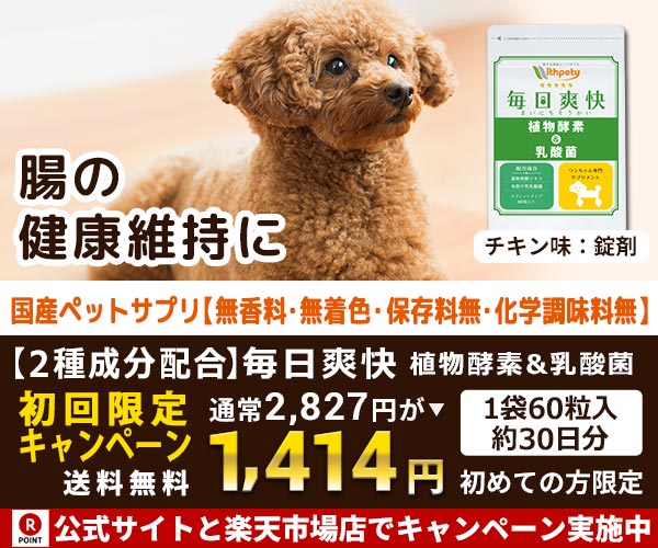 人間もサプリメントを飲んで体をケアするように、愛犬も免疫低下や体臭が気になり始めたらサプリメントで、ドッグフードだけでは補えない健康管理が必要になっています。 毎日爽快という犬用腸活サプリは、獣医師の方もおすすめしているサプリメントなので気になって徹底調査しました。 愛犬のためにヘタなものは口にさせたくありませんので、しっかり調べましたよ。 [st-kaiwa2]愛犬用の腸活サプリがあるのね[/st-kaiwa2] [st-kaiwa1 r]愛犬は大切な家族だし健康管理をしっかりしてあげたいもんね[/st ...